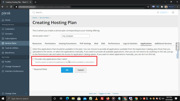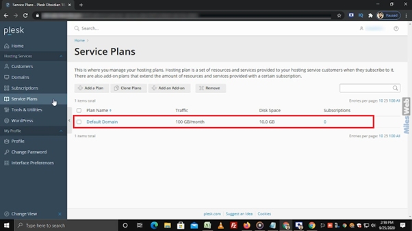 - On the left sidebar, under Hosting Services, click on Service Plans.