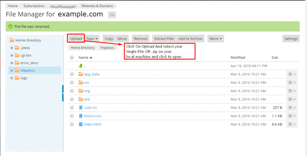 That’s it! You have now learned to upload content to the Plesk server with the help of File Manager.